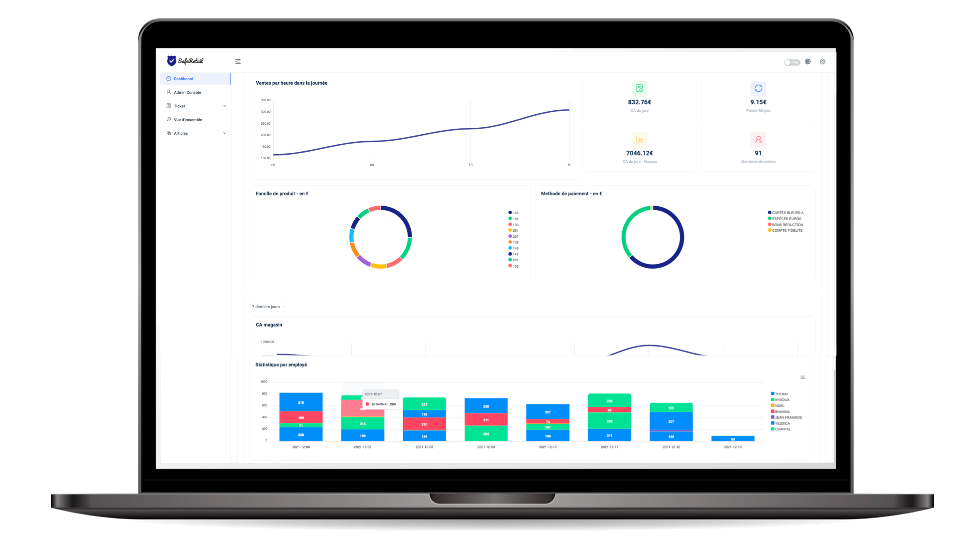 Visionnez en temps réel l'évolution de vos KPI de ventes et de fraudes. Vous pouvez analyser l'ensemble de vos points de vente en un click. Toutes les informations sont mises à jour en temps réel.