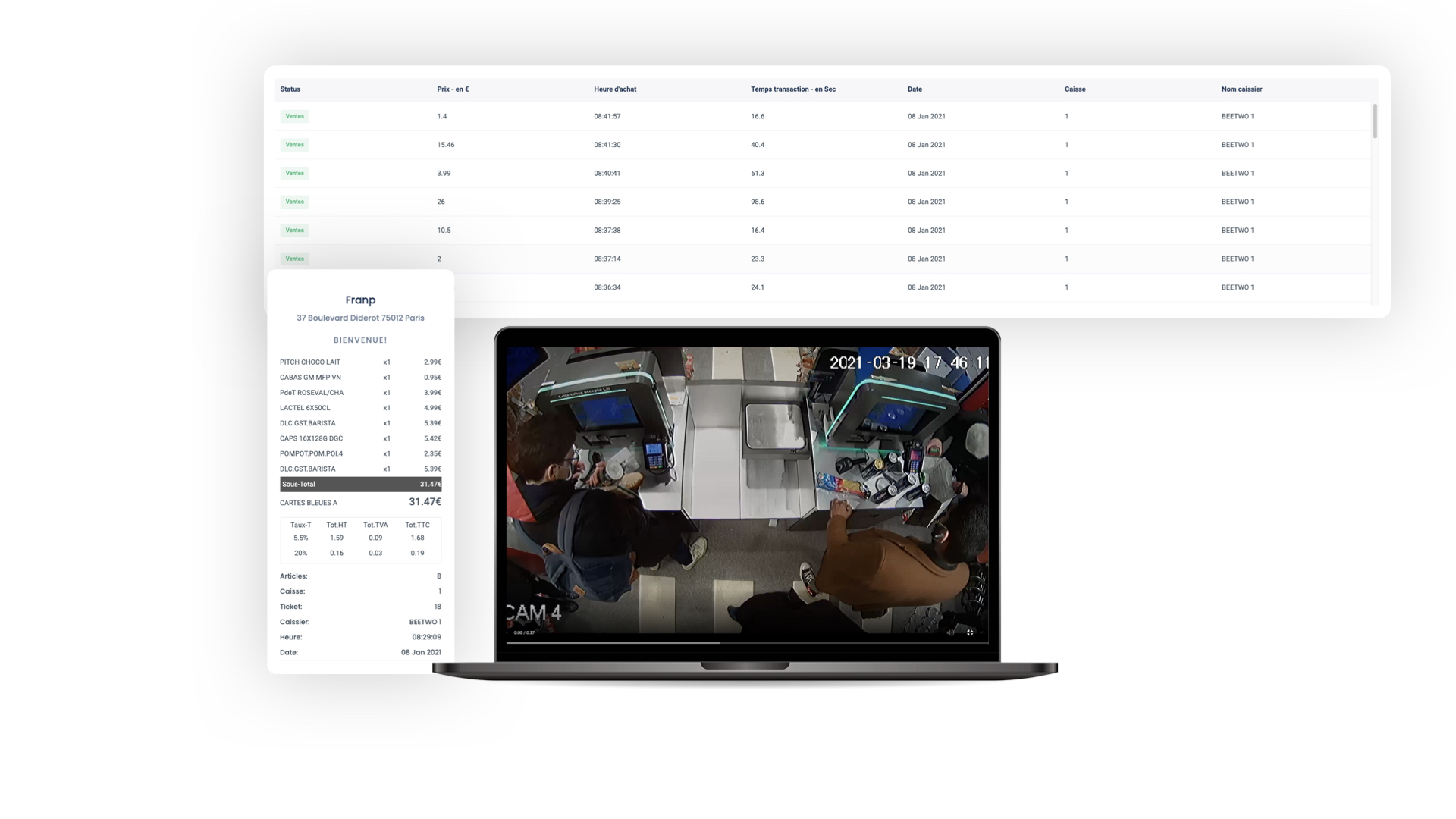 Chaque interaction avec vos lignes de caisse est automatiquement enregistrée par votre système de vidéo de surveillance existant à l'aide de notre technologie.